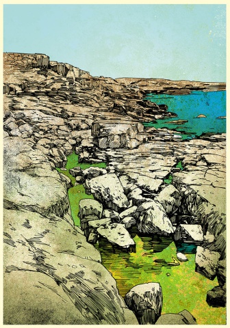 Reiseillustration, Bornholm, Landschaft